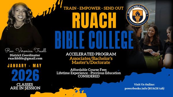 RUACH Bible College is an innovative learning community which provides an opportunity for individuals to complete prerequisites and matriculate into advanced courses to earn their degree(s) through online learning.