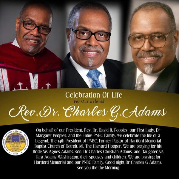 The late Rev. Dr. Charles G. Adams, will always be remembered and cherished in our hearts for the countless years, life-lessons, meetings, visits and impartations within our family, and ministry. His heart of love and humility was genuine and rare. Thank you "Dad," for being a wonderful, born-again, blood-washed Godfather, unto us.